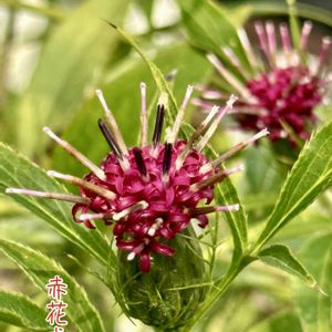 🌺赤いお花たち🌺 ❶❷アカバナオケラ(赤花朮」) ❸ハナキリン ❹チェリーセージ ❺ミニバラ