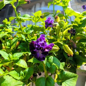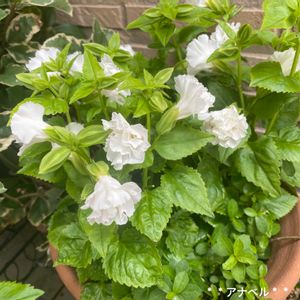 こんにちは😄 いったい梅雨はどこへ行ったのかと思うほど雲ひとつない青空の土曜日☀ 今日は月ちゃん🌛の月1の点滴💉をしに朝から動物病院🏥へ行ってきました🚙💨 相変わらず先生や看護師さんの前では巨大な猫を被っている月ちゃん🌛は、今回も「本当に大人しくて良い子だね」と褒められました😸(すかさず「家ではものすごい暴れん坊ですよ」とネタばらしする私🤭) 本日の📷投稿は、少し前に作った寄せ植え。 テーマは『夏の昼下がり』🎐 夏の庭に吹く涼やかな風のように、優しい雰囲気のお花や葉っぱを揃えてみたものの、メインの八重咲きトレニア・セレスティア『パールホワイト』がなかなか咲いてくれなくて、先ほどやっと📷撮影出来ました🤗✨ と言いつつ、アケボノアシの横に植えた斑入りネコノヒゲ『ネコマーブル』がまだ小さくて、すっかり埋もれてしまってますけど💦 なお、この寄せ植えは、いつも仲良くしてくださる花友のユーリさんをイメージさせていただきました🤍🌿 使用した花苗 ・八重咲きトレニア・セレスティア『パールホワイト』 ・這性キンギョソウ『アールグレイスモア』 ・アケボノアシ  ・斑入りネコノヒゲ オルトシフォン『ネコマーブル』