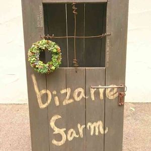 bizarre farmさんから立て看板のご注文✨ ほぼ、お任せで作らせて頂きました🎵 汚して汚してアンティーク風に(๑¯艸¯๑)💕 『bizarre farm autumn フェス』に出品する リース付けて撮影📷✨ 旦那にお前は何屋なんだ? とツッコまれる(*′皿`艸)www