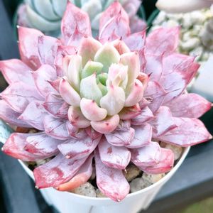 お盆休みの初日は、多肉イベントへ♫ 今回はピンクやオレンジの子に寄った気がする☺️ 一つ調子が心配なガステリアちゃんがいて、連れて行ってみてもらったら、⭐︎になってたそうです😢 本当に申し訳なく。。。 初めて枯らしてしまって😢 その鉢には今日お連れした甜茶錦さんが入りました🙏 うーん、可愛い🩷 大事にします✨✨