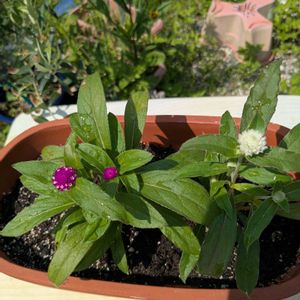 豊明市場×GreenSnap オリジナルブランド「三ツ星品質」モニター センニチコウ ミッテ いただいてから一週間、ようやくポットから小さいプランター(12cm×25cm)に植えました 一週間で一回りほどたくましく大きくなってる気がする (⑉• •⑉)