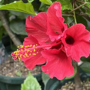 ハイビスカスのレッドマジックに今季初の白い模様が入りました〜💓 今までは赤一色で今年は無理かもと思っていたらシーズンオフを前に一回り小さく存在感はそのままに開花😍