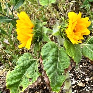 昨日のひまわり🌻 アップデイトしたら連投できました.フジセツさんありがとう😊 同じ時期に植えたのにこんなに違う大きくならない. 発芽する時の土が大事なのかな。 その後の土にも問題が… 街路樹下にも植えて見ました.