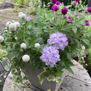 三ツ星品質センニチコウミッテ ミッテは添えられたお手紙にあるように本当によく分枝して花が増えています♪ 一緒に植えたアイストゥインクルともいい感じになりました♡ ①②③色んな角度から撮ってみました ④いつもは玄関前が居場所です
