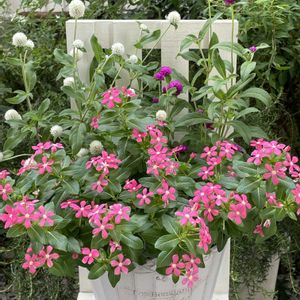 🌼センニチコウ ミッテ🌼 久しぶりのモニター報告🌞 あまりの暑さにほぼほぼ放置💦ですが、花色は褪せることなく元気にポンポンと咲いてくれています💜 ペンタスピンク×白ミッテはめっちゃ相性✌🩷この後カット✂️しました。 ピンクミッテはジニアに半呑み込まれ気味💦(((^^;)こちらもジニアをカット✂️。 白ミッテはドライにします~😊