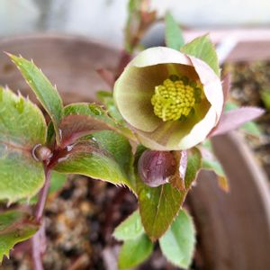 ①②古くから家にある、コロンと可愛いクリスマスローズ❣️リビダス系? 今シーズンわが家で最初に咲いたクリスマスローズです🎵\(^o^)/ ③昨シーズン小苗を買ってきて、今年初開花のクリスマスローズです❕😄 名札にシングル ゴールド ミックスと書いてあったのですが、外側から見るとゴールドには見えません💦 でも内側はゴールドっぽいので、開花が楽しみです😃🎶 ④硬葉ハオルチア3種で、🏷️十二の日 に参加します🎶 ストライプの白鳥の色が爽やか🎵😄✨