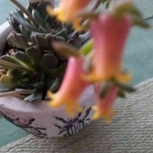 おはようございます✨ 福岡は久しぶりの雨 多肉も雨で給水中 エケベリア ミニマ、咲きました。 🏷️水滴の水曜日