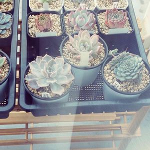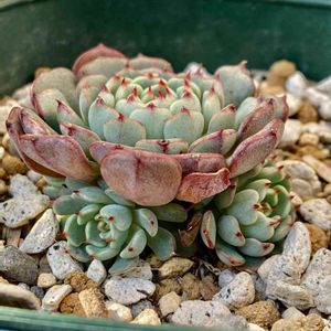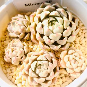 小型エケベリアのぎゅう詰めデス❣️ ミニマ(ブルーミニマだったかな?)と ザラゴーサhybと 雪影 雪影の仔吹きがものすごいんですけど〜🤩 ほとんど放置。 お日様と辛めの水と風で出来上がりました!