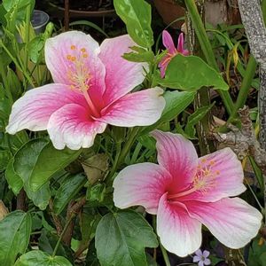 夏彩(なついろ) 四季咲き薔薇🌹三種! 朝の散歩道、ご近所さん家で 挿し木するなら夕方取りに 来てって、ありがたいです😊 ②③嫁撮影 同じお宅の百日紅さんと、昨日自宅で咲いていたハイビスカスさんです😊💜🌺 百日紅さん、実物は紫色ですが、picはピンクになっちゃいます🤔 (byソングフラワー)