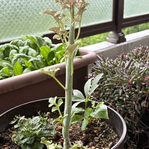 多肉マニアの方に貰った七宝樹🪴 寒い時期に地植えからとった短いのを、ベランダにあった鉢に適当にズボッと植えといたら伸び伸びでびびってますが、なんかかわいいから気に入ってます❤️