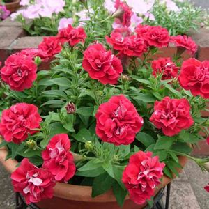 ペチュニア ギュギュのダブルレッドです。 思ってたよりギュッとならず花数が増えませんが途絶える事なく咲いてくれます❤️