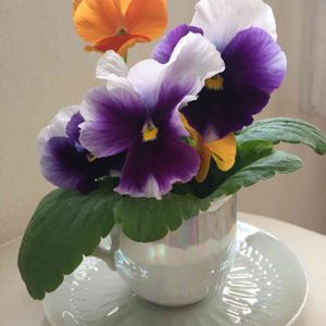 おはようございます☀ やっと 気持ちの良い お天気になりました😃 ✂️した パンジー 綺麗なので お部屋に飾ってみました🤗