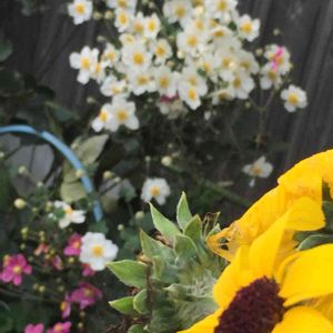久しぶりの晴れなんで 庭をウロウロ🎶🎶🎶 夏を惜しむかのように咲く ヒマワリ🌻と満開のシュウメイギク 季節の移り変わりを感じてます🍃🌾🍄🍂🍁
