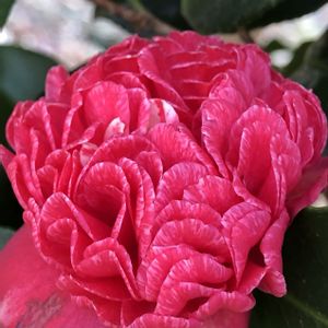 🌺八重の椿❤️🌿 ちょっと絞り模様がある八重の椿🌺 公園で咲いていました💕