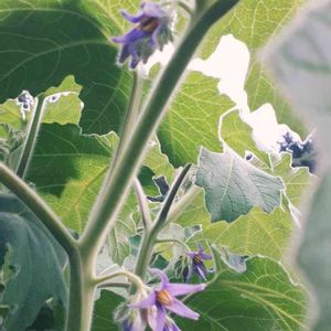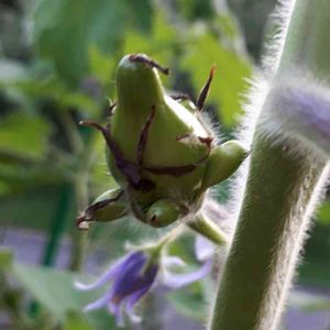 『フォックスフェイス🦊』 去年の実から初めて種とって蒔いてみました。 ナス科だけに花はナスの💠だね😅 この後どんな風に実🦊になっていくのか➰楽しみ( *´艸`)