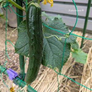 キュウリ 初収穫✨️🙌 2本の貴重な採れたてキュウリ🥒🥒 より美味しそうな方を夫に譲り、 ちょっと優しさを見せてやりました🤣 中高年夫婦の静かな食卓に響き渡るポリポリ音🤣 美味しゅうございました😋