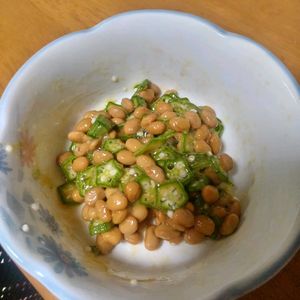 【今日の1品】 本日、収穫したオクラで オクラ納豆✌️ 1度やって見たかった。 ダブルねばねばで最強💪 温かい御飯🍚の上にかけて食べます😋 まだまだオクラは収穫が出来ます。