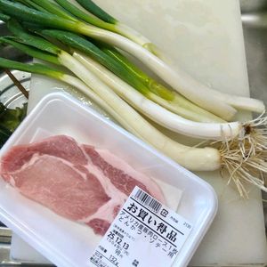 【今日の1品】 畑から収穫したネギと購入した肉🐖でネギマで🍶一杯。まだ飲むのは少し早いから準備だけ😋 さぁ~我が家でネギマパーティーやるぞ😃 おいで~😲