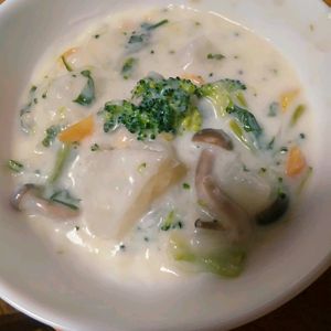 本日3連投になります🙏 我が家で収穫したカブラ、人参、ブロッコリー、玉葱でクリームシチューです。 自然の恵に感謝🙏