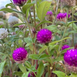千日紅 ミッテ 届いた時は、水💦が欲しくてダランってしてましたが 今は生き生き育ってます。 前回まで、白🤍は やっと花芽があるかなくらいから 今は、ピンク🩷に負けないくらいです