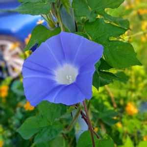 久しぶりにアサガオ江戸風情が咲きました ②③こぼれ種で室外機の横に咲くアサガオが今朝もたくさん🩵 フライングしてもうピンクになった子が1輪🩷 ④⑤コスモスやキバナコスモスに絡まって咲くアサガオ🩵