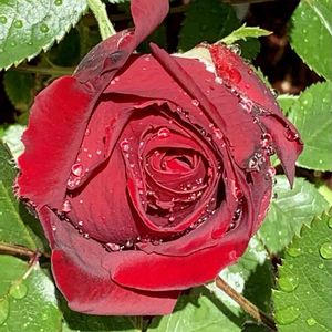 イングリットバーグマン🌹 . 雨に濡れながら、2番花咲きました . 素敵な赤✨