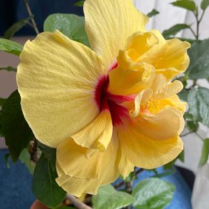 夏彩 ハイビスカス🌺 今年2回目咲いてくれました 品種名、ニューロング ライフ·アドニス ダブル イエローです!