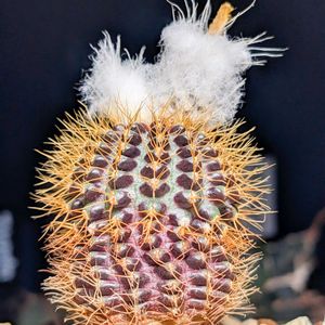 小型のサボテンちゃん✨✨ メタリックなエメラルドとパープルが綺麗で、テッペンのもふもふがたまらん🤤