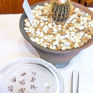 昨日のサボテンちゃんの続き😊 サボさんに「種ある情報」を頂いて、ほじくったらバッチリ入ってたぁ〜😆🙌 自家受粉出来るなんてお利口さん✨✨ 撒いてみょ🤭