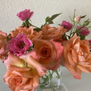 「梅雨明けは来週あたりになると予想しています」…天気図を示しながら予報士さんが言ってましたが、開けたんじゃない!と言いたくなる様な暑さが続いています ☀️ ①春の半分程の大きさで咲き始めたバラを、ガラスの空き瓶に挿して楽しむ事に…(雑😹) ピンクインフィニティ アンジェラ ②オリエンタルリリー(名前は不明です…) 今年は花が小さい様な…植えっぱなしの限界が来たのかもしれません💦 …百合の香りは夏の思い出を連れて来ます…