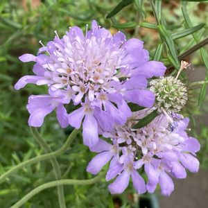 梅雨明け宣言が足踏み中ですけど、個人的にはすっかり真夏!ジリジリの真夏です^_^☀️ ①花茎はウネウネですが、暑い中咲き続けています スカビオサ ブルーバタフライ もう一鉢のシャキッとした青、コーカシカブルーと比べたら格段に優しい青♡ 今は其々お一人様だけど、一つの鉢に混植でもいいかなぁ…などと思い巡らすのも楽しいひと時です🥀 ②もうそろそろ最終フェーズの紫陽花、「ひな祭り」… 気温の高さに水切れを恐れつつも長く楽しませてもらいました♡^_^♡
