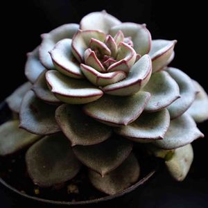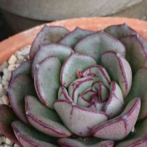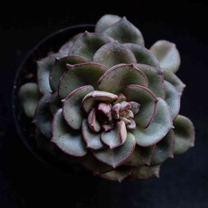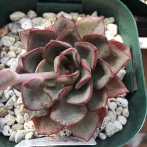早くもゴールデンウィーク🍀 晴れ続きで水やりに忙しい。 エケベリア属、モラニー🍵 渋いグリーンに赤い輪郭が格好いい♪ てっぺん近くから花芽が出てほっぺたブニュ~😙 葉が分厚い様に見えて意外と水切れに弱いのか下葉が萎びやすいです。 足元には子供が数個出てる💕