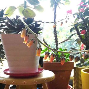 独創的な花芽を伸ばすモラニーさん💕 あ、咲いたね~🌼 お祭りの提灯みたい🏮 毎日、笑わせてくれて…♬*♪♡ Thank you♪(⌒∇⌒*。)