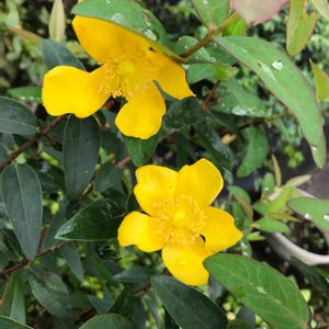 おはようございます🌿 いつもの公園散歩道 2メートル位の木に黄色いお花が一面に咲いていました🍺 名前が分かりません❗よろしくお願いいたします🌿 陽だまりのなかでさんにアンデスの乙女と教えて頂きました! ありがとうございます🎵 花言葉 輝かしい未来 強運