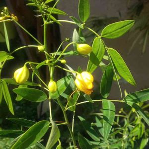 おはようございます😃 さっきの植物です💛 アンデスの乙女という名で出ています⁉️ もう離せんな 😁 コバノセンナは葉の先が丸いです。
