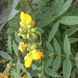 名前に似合わず、強健で 成長のはやい マメ科の木だそうです。 3センチ程の、黄色く元気な花をつけています。 だけど、夜は昼間のハツラツ姿とは違う表情😁♥️ 乙女は🌱葉っぱを閉じて 静かにおやすみになられます……🌃😪💤