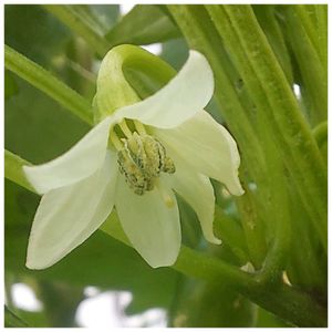 今日のお花 「トウガラシ」🌶️ まだまだ 次々と咲いて たくさん 収穫できそうです (*˘︶˘*).。*♡❤️💚