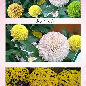 10/14(日)⑬ ポットマム お花屋さんに並んでました(˶ᵔᵕᵔ˶) ❁菊の花開く。重陽の節句、菊の節句はだいたい今頃ですね。 ❁ポットマムはスプレーマムの1種 。スプレーマムは日本、中国からアメリカに渡って品種改良された西洋菊です。 ❁似ているピンポンマムは、ポットマムが、オランダで品種改良された完全な球体の西洋菊。 ❁写真ではポットマムも球体に見えますが、Ω型のようです。1鉢800円でした。 ❁ポット(鉢)で楽しむ菊という意味です。 下は2鉢で300円👀!! 毎年恒例の人気商品らしいです。下の菊は名札がわかりませんでした😅