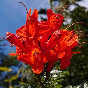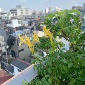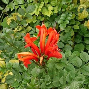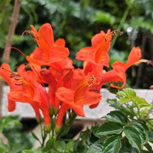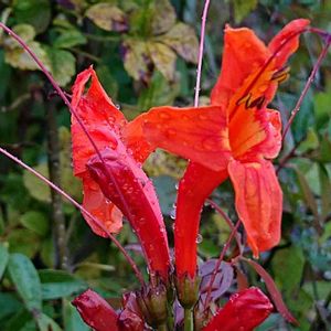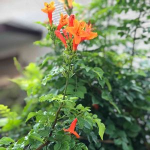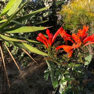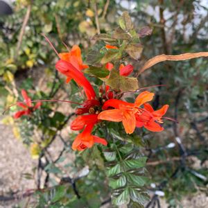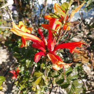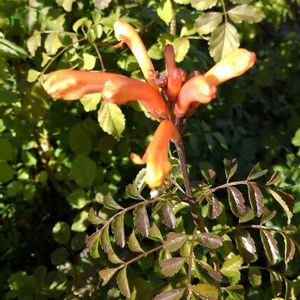🧡ヒメノウゼンカズラ ノウゼンカズラ科 タチノウゼン属 直立した立ちのぼる低木で高さ2~3mに最長し、幅も同程度です 対生葉序でわずかに鋸歯状 緑色から暗緑色で羽状。5~9枚の長楕円形の小葉がつきます 花は筒状で細く一年を通して様々な時期に咲くそうです