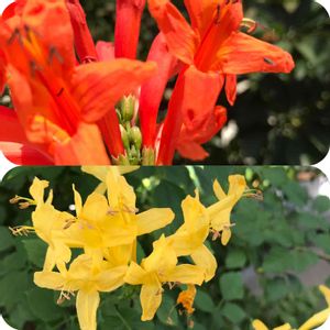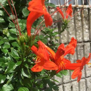 通勤途中に 見っけ❗️ 色違いだっ❣️ 名前を忘れちゃったんですがー わかる方 よろしく! 名前が分かりましたー ヒメノウゼンカズラでした! 昔あったノウゼンカズラは義母が切ってしまっていませんが お花の形状が全く違うので ノウゼンカズラだとはっ❗️どうりで 元気だぁー❗️