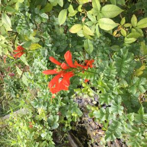 名前を教えて!③ カエンカズラかなぁ…と思ったら、カズラではなく高さ150cmくらいの木です。 ここ一週間で見つけた気になる花たち⁉️ 教えてください🙇♀️ またまた「たらこ唇」さんが〜‼︎ ヒメノウゼンカズラ✨南アフリカ原産、半つる性植物で生垣にもなるそうです❗️ ヒメが付いてるけど、ノウゼンカズラには全然似てないですね〜😆