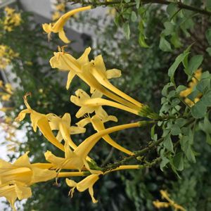 出かけ先にて イチメートル近い木 全体にこちらの黄色い花が咲いてました。 始めて見たような 教えて下さいね🎵 忍冬さん、みーさんにご回答頂きました。 ヒメノウゼンカズラ又はキイロヒメノウゼンカズラだそうです👌 ノウゼンカズラって種類が多いですね😆👍❤️ 有難う御座いました🤗 又1つ勉強になりました🤗🏵️