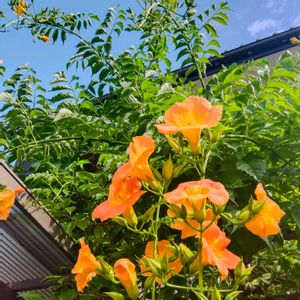 7月26日 今日のお花 ♥🧡🌿ノウゼンカズラ🌿🧡♥ 中国原産で、日本には平安時代以前に入ってきたといわれてます。 1️⃣2️⃣3️⃣4️⃣ 今咲いてます。 5️⃣同じノウゼンカズラ科のキンレイジュです。 2024.2月 息子家族がタイ旅行にて撮影 🏷️土曜日はお空の発表会 🏷️おしゃれな土曜日♪ 🏷️気がつけば土曜日