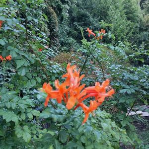 今日のお花*ノウゼンカズラ2️⃣ 仲間たち、集まって~📣🎵 《スライドpic》 ①、② アメリカノウゼンカズラ♥️🧡 ③ヒメノウゼンカズラ🧡
