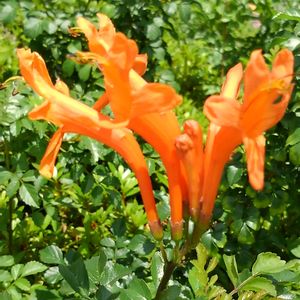 今日のお花 ノウゼンカズラ ①②③は 2年前の我家のアメリカノウゼンカズラ。 初夏から九月中、賑やか咲いていました♪ 庭が南国🏝️風に見えて 好きだったなー😍 ④は阪急宝塚駅前のノウゼンカズラ 昨年6月のpic ⑤は近所のコミュニティガーデンの ヒメノウゼンカズラ (タチノウゼン属、ノウゼンカズラ科)