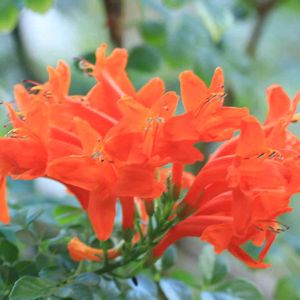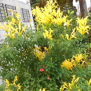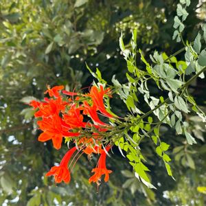 ヒメノウゼンカズラ(学名: Tecoma capensis 英名: Cape honeysuckle 和名: 姫凌霄花)の花🌼🌿🌸 ヒメノウゼンカズラは、南アフリカ原産の半蔓性の樹木で、よく見かけるノウゼンカズラに近い仲間です。 ヒメノウゼンカズラの花期は、夏から秋にかけて咲きますが、秋によく花を咲かせます。 花色は、橙色や黄色で、園芸品種のアウレア(Aurea)というのもあり、筒状に長い花が集まった花序を作ります。 いくつかの園芸品種も作られていて、黄色の花を咲かす”オーリー”や赤色の園芸品種”アプリコット”などが知られています。 素敵な黄色のヒメノウゼンカズラの花をお楽しみください。 🌼🌿🌺