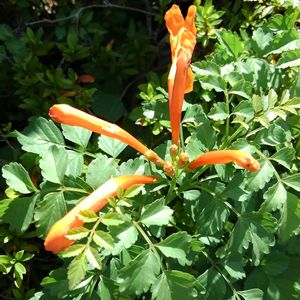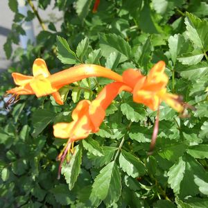 ヒメノウゼンカズラ (姫凌霄花)が咲いてました❤️🧡❤️。 〜近所にて〜