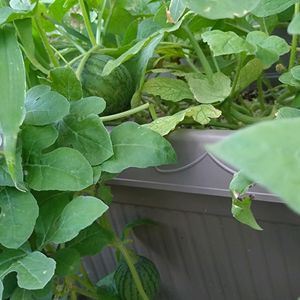 植替えのその後 小玉西瓜達はあっという間にジャングルになってきたよ 蜂さんがいるから放置でいるけど7個程受粉出来てるみたい。お盆までには少しなって欲しいな(^_^;)💦 今年は蓮も良い感じで今年は杜若園芸さんで購入した小桃紅蓮という品種の蓮が初めて花芽を付けたよ 最後のはSUPERMARKETで購入したキャロルセブンを実を丸ごと植えたらとんでもない事になってきたよ もう少ししたら株を分けて植え替えるよ 夏用のミニトマトと切替にしようと思う。