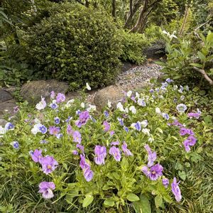 今朝6:00 気温22℃曇り☁️ 昨日の猛暑に耐え 朝はみんなシャキッと✌️🤩🎶🎶🎶 🏷️一般ジーの会♪ 🏷️ビオラ・パンジー祭り♪ 🏷️オジさん顔ビオラパンジー