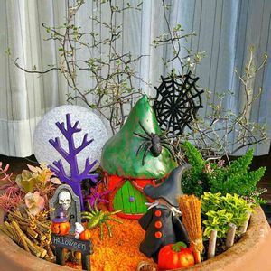再び、フェアリー ガーデンの ハロウィン バージョンを作ってみました~ 魔女と魔女ハウスは自作ですが、他の小物は ダイソー + セリア + フライングタイガー コペンハーゲン。 植物はコロキア ワイヤースター + カルーナ ビューティマーブル + イオニマス マイクロフィラ です。